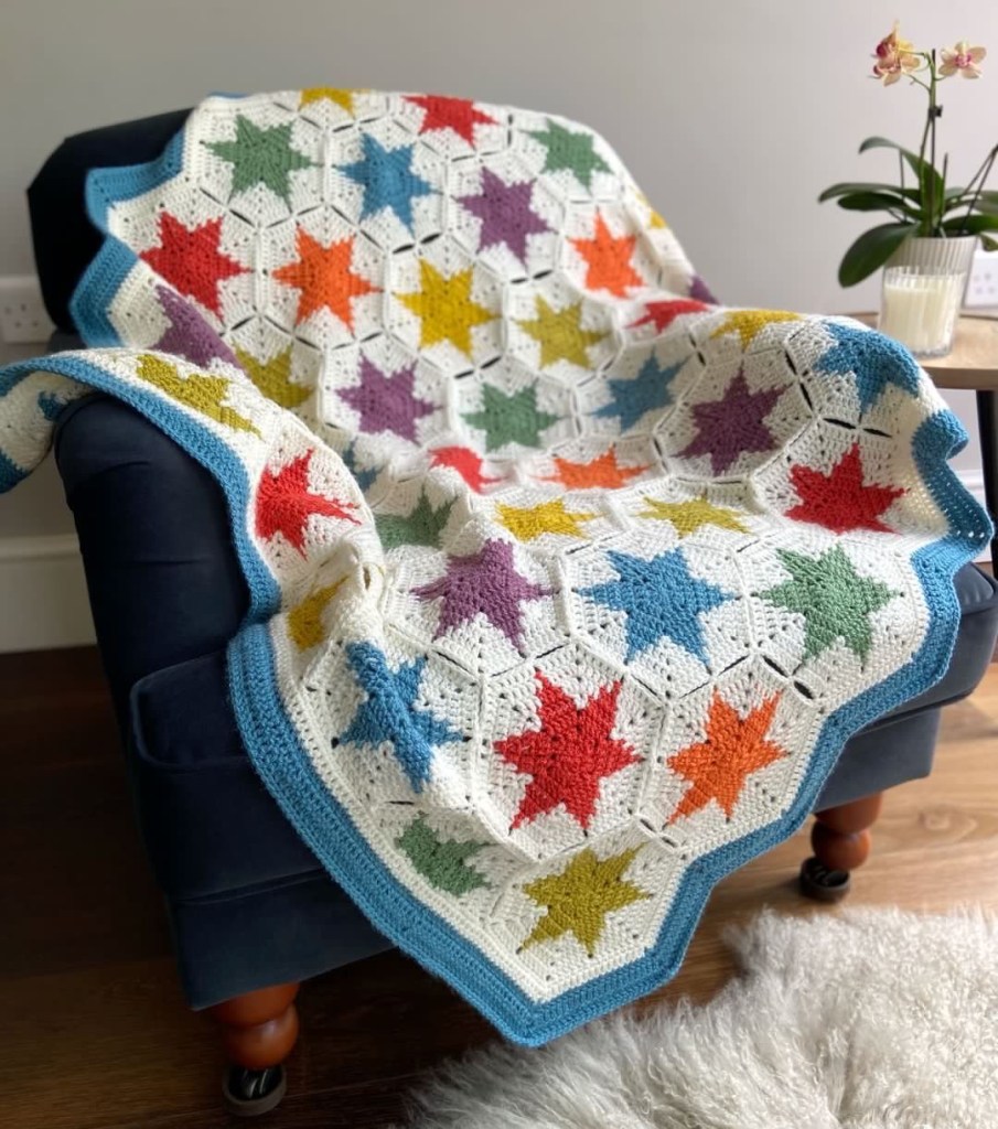 Catherine got hooked on crochet while expecting her second child and since then, her passion for tapestry crochet has grown and grown. Her designs have been featured in books and magazines and she has also designed for yarn companies too. Catherine’s designs are often influenced by geometric patterns and, I’m told, are rather addictive to make.