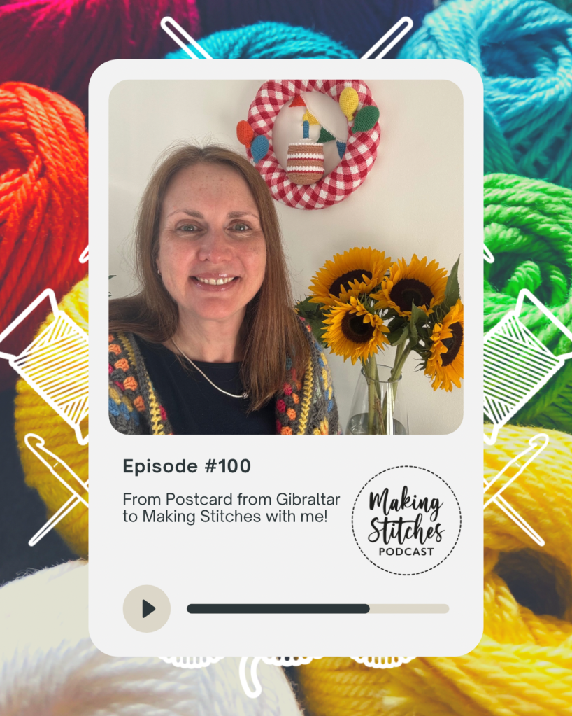 Among the topics we covered were where I first learned to sew, knit and crochet, my career in journalism and how I got started in radio, our family’s time in Gibraltar and how that led to starting my Postcard from Gibraltar blog back in 2015, making friends through the world of creativity, podcasting and blogging and, of course, 5 years of Making Stitches Podcast.