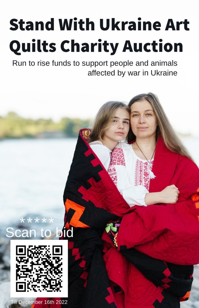 Olesya has been inspired to create four beautiful large quilts – the polar opposite of her usual mini quilt projects and blocks – ‘Acorn Power’, ‘Blossom of Hope’, ‘Knot for Luck’ and ‘Stand Together’ are up for auction to raise much needed funds for four Ukrainian charities; Magic Food Army, Medical Battalion ‘Hospitallers’, Ruslan Goroviy and Serhiy Zhadan. You can find all the information you need about the auction and the charities involved here.